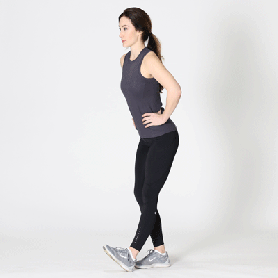 • Place your hands on your hips while standing with your feet shoulder-width apart.