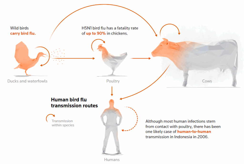 H5N1 has a high mortality rate among humans. It spreads fast among birds and can easily jump to mammals. A recent case of infection in a Texas dairy worker has reignited the debate about preparedness.